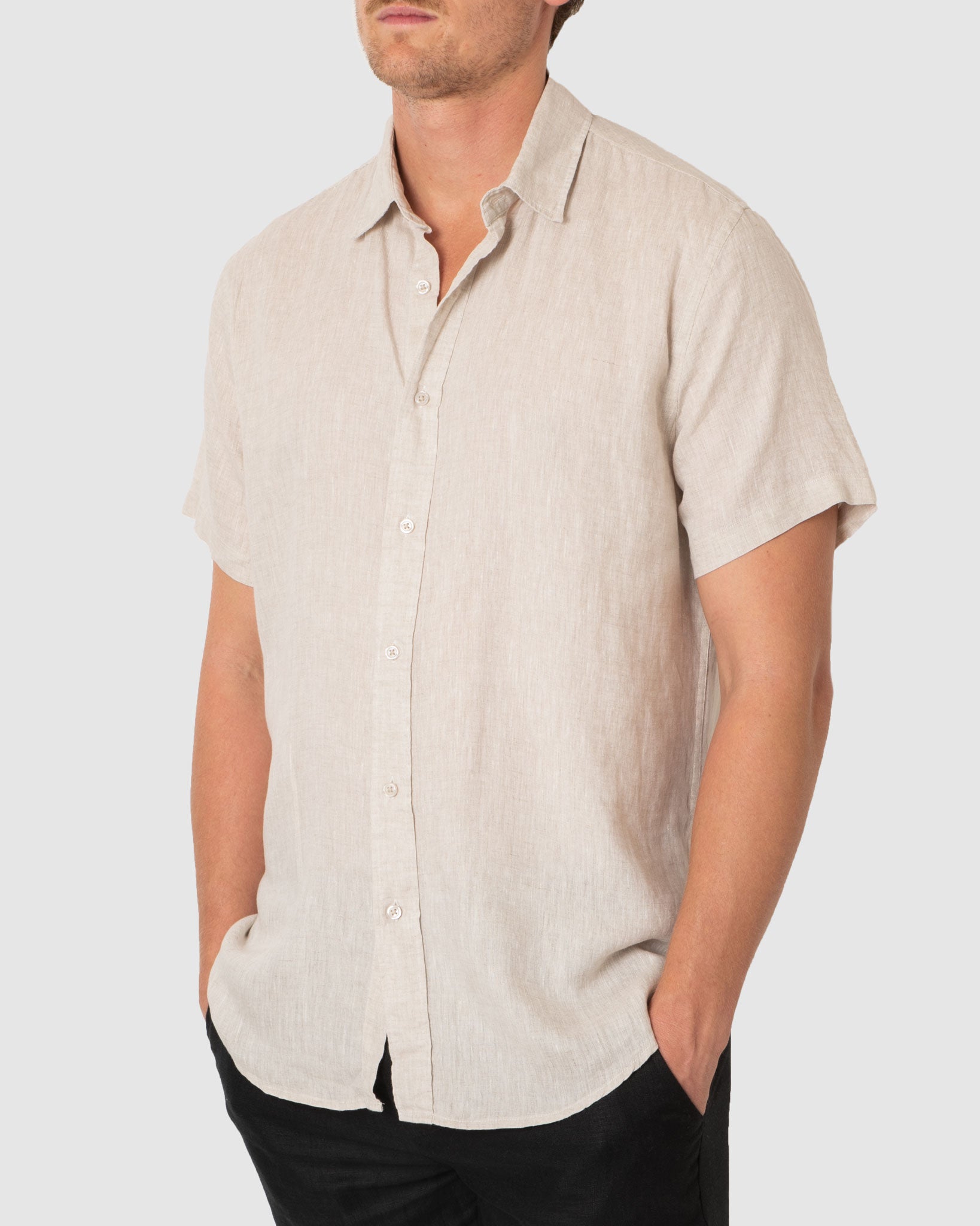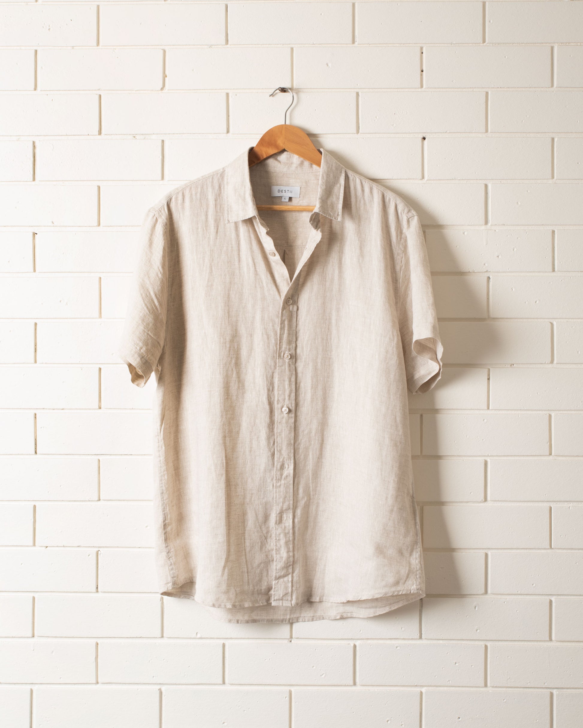 Button it up for a polished look or keep it casual and breezy - the DESTii short sleeve linen shirt is your ultimate sunny-day essential.