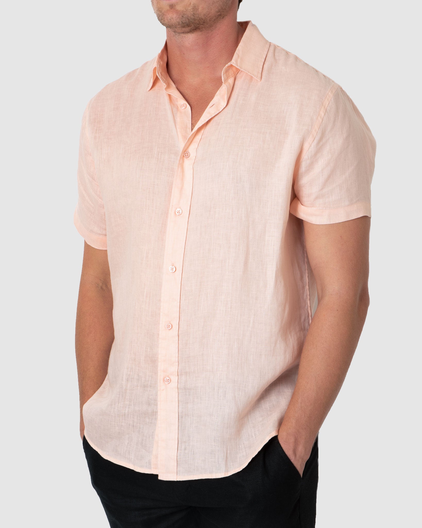Button it up for a polished look or keep it casual and breezy - the DESTii short sleeve linen shirt is your ultimate sunny-day essential.