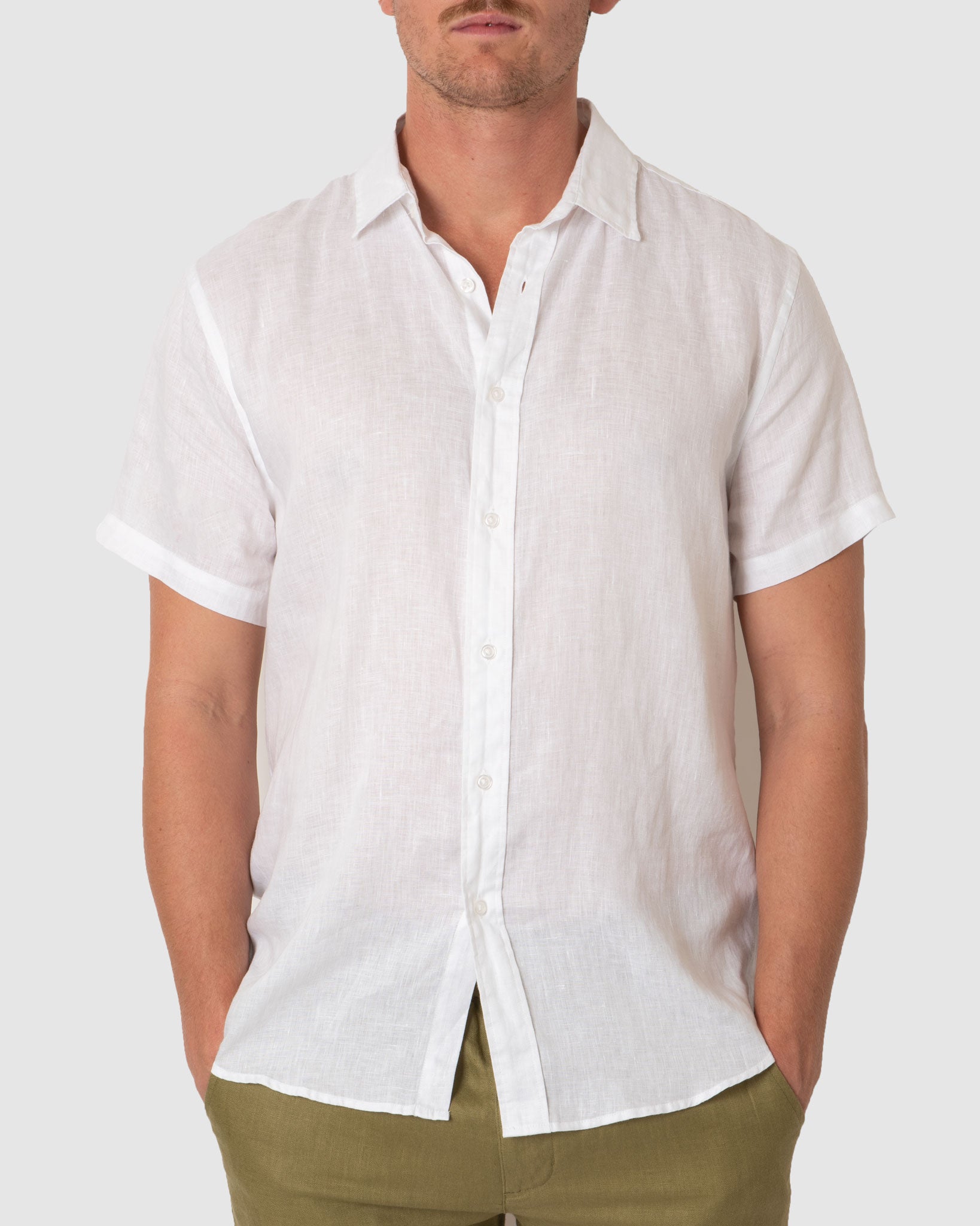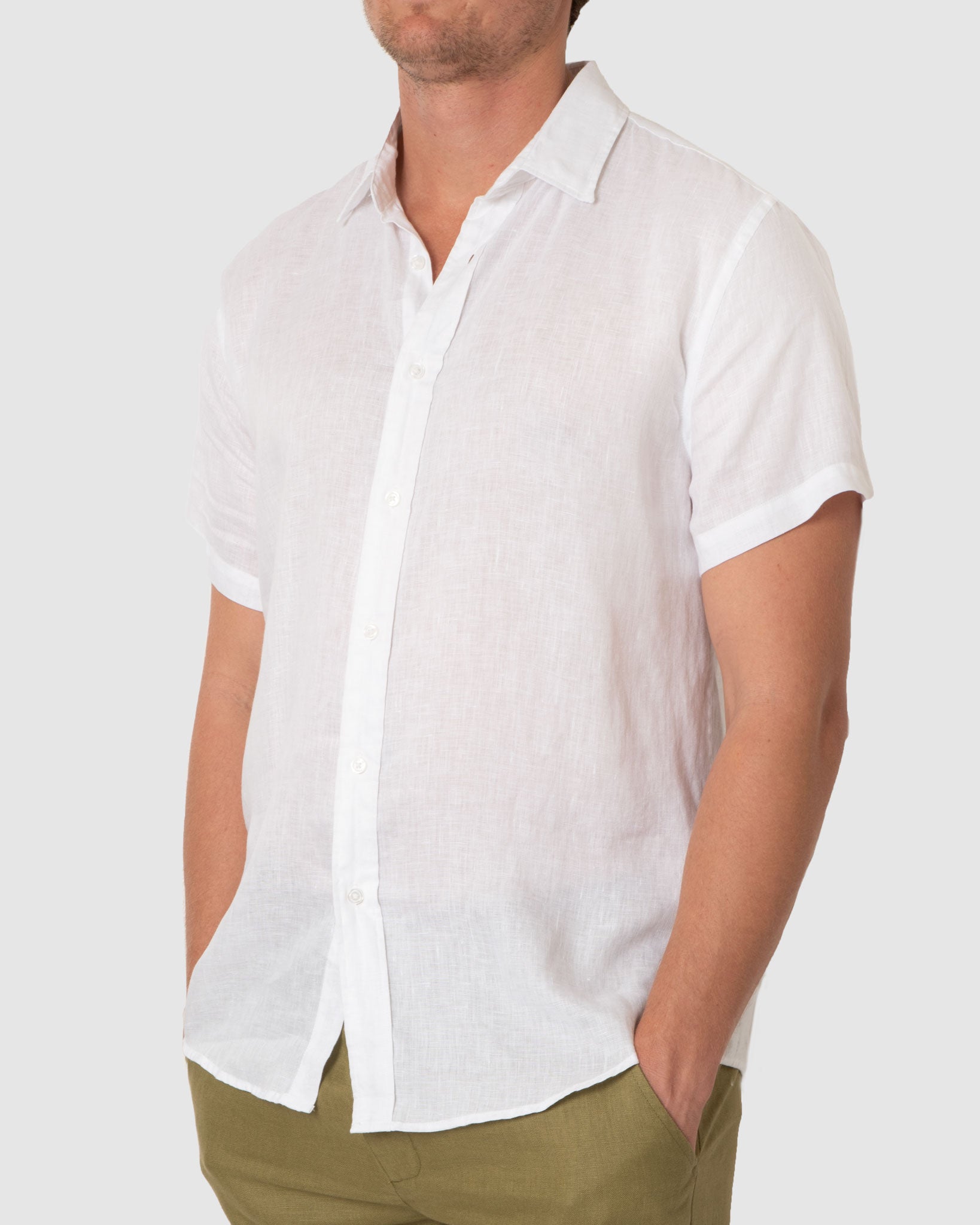 Button it up for a polished look or keep it casual and breezy - the DESTii short sleeve linen shirt is your ultimate sunny-day essential.